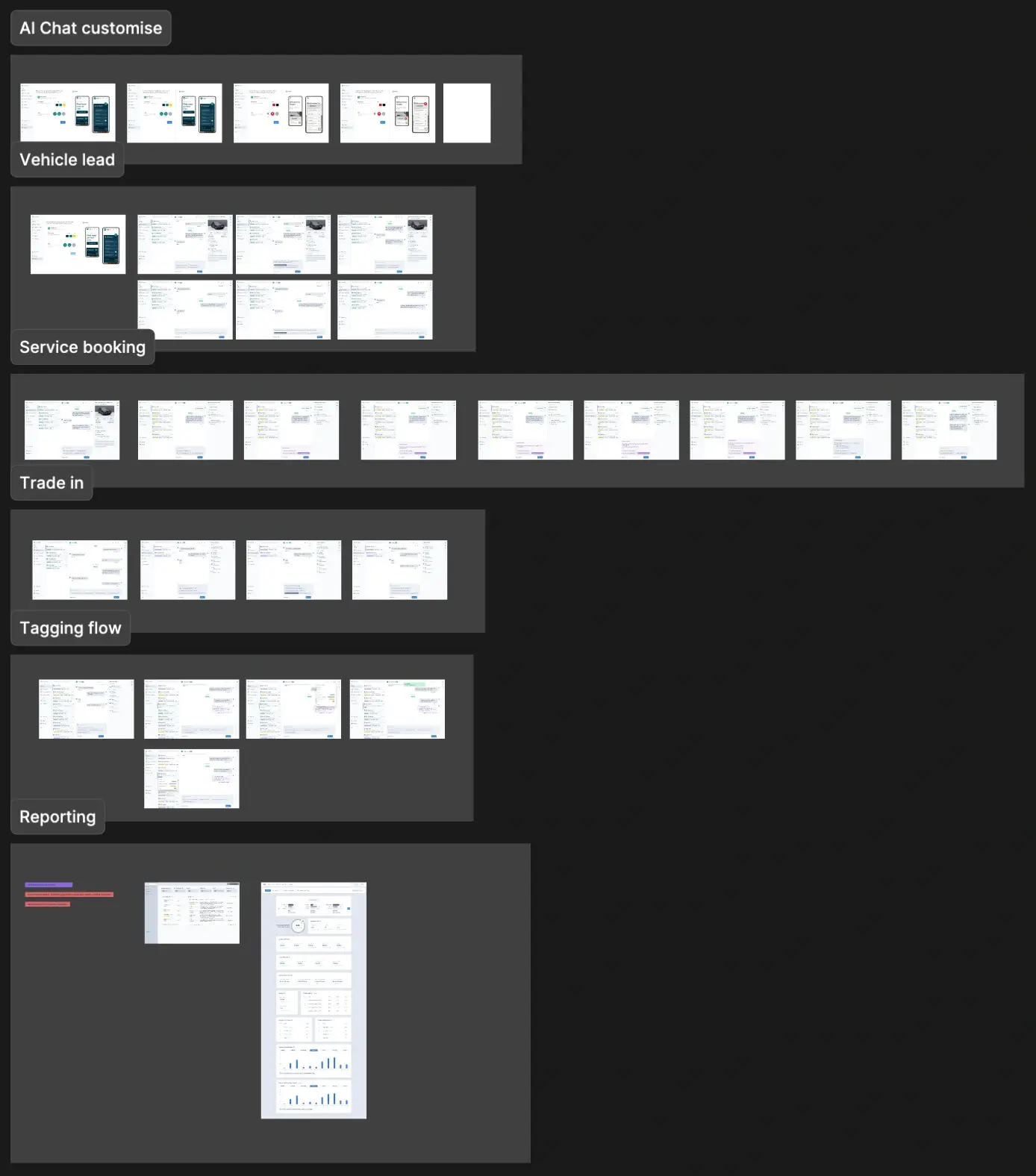 I reviewed behavioural data from dealership websites to understand how users navigated inventory, service pages, and enquiry forms. Patterns showed high drop-off at key conversion points and frequent confusion during chat interactions. These insights helped identify where the AI chatbot needed to provide clearer next steps and where the dealer portal could streamline lead handling. The data directly shaped the core workflows and priorities for both user groups.